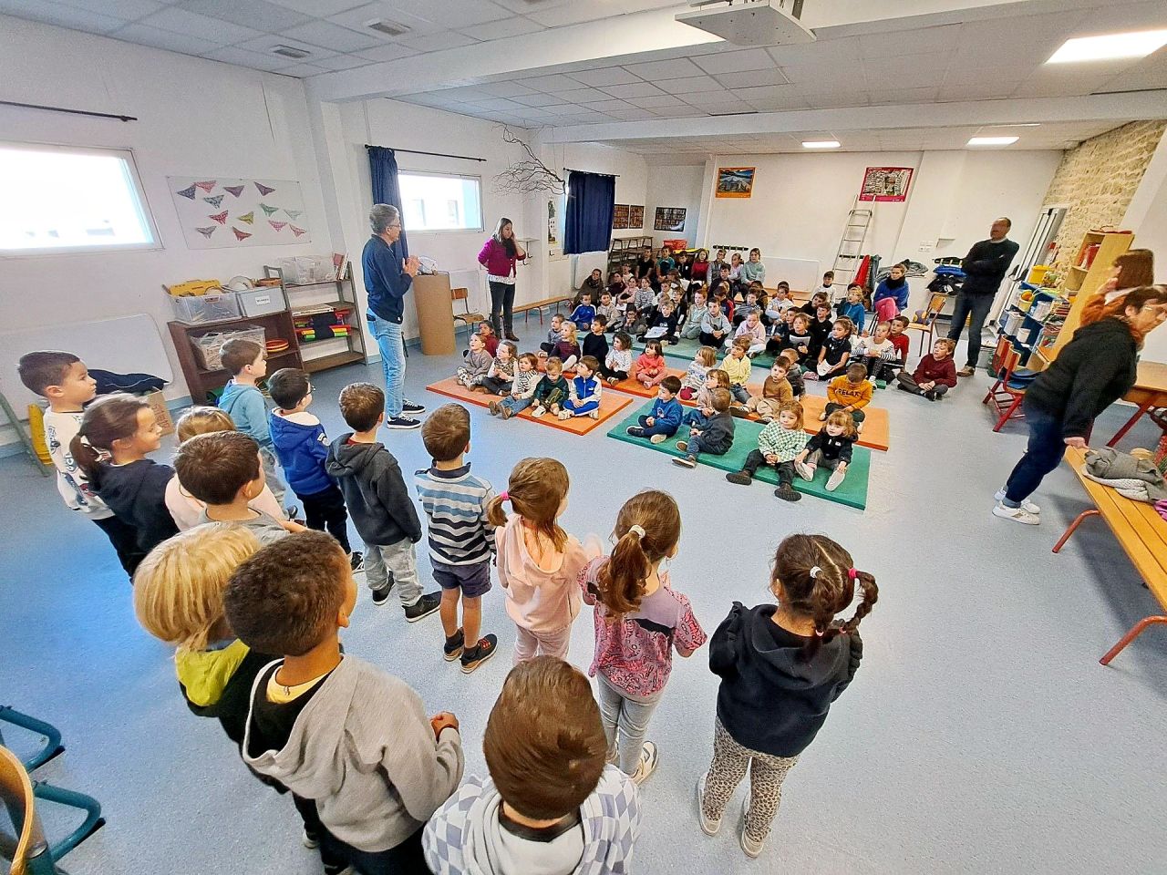 Pour cette rentrée 2025, Sonia Tardivel (à droite sur la photo d'équipe) rejoint l'école pour enseigner le mardi en CE1-CE2, et les élèves ont pu redécouvrir un hall maternelles rénové avec le concours d'une maman d'élève.